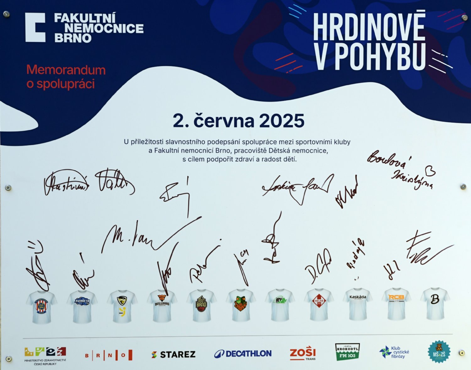 Oficiální potvrzení této spolupráce se uskutečnilo za účasti ministra zdravotnictví prof. Vlastimila Válka právě v pondělí 2. června 2025 v Dětské nemocnici, kde došlo k podpisu memoranda mezi FN Brno a sportovními kluby – Rugby Club Dragon Brno, Kometa Brno, Basket Brno, Bulldogs Brno, Rugby Club Bystrc, Zbrojovka Brno, Baseball Draci Brno, Žabiny Brno Basketbal, Volejbal Brno (muži), Volejbal Šelmy Brno, Golf Brno a Helas Brno futsal.