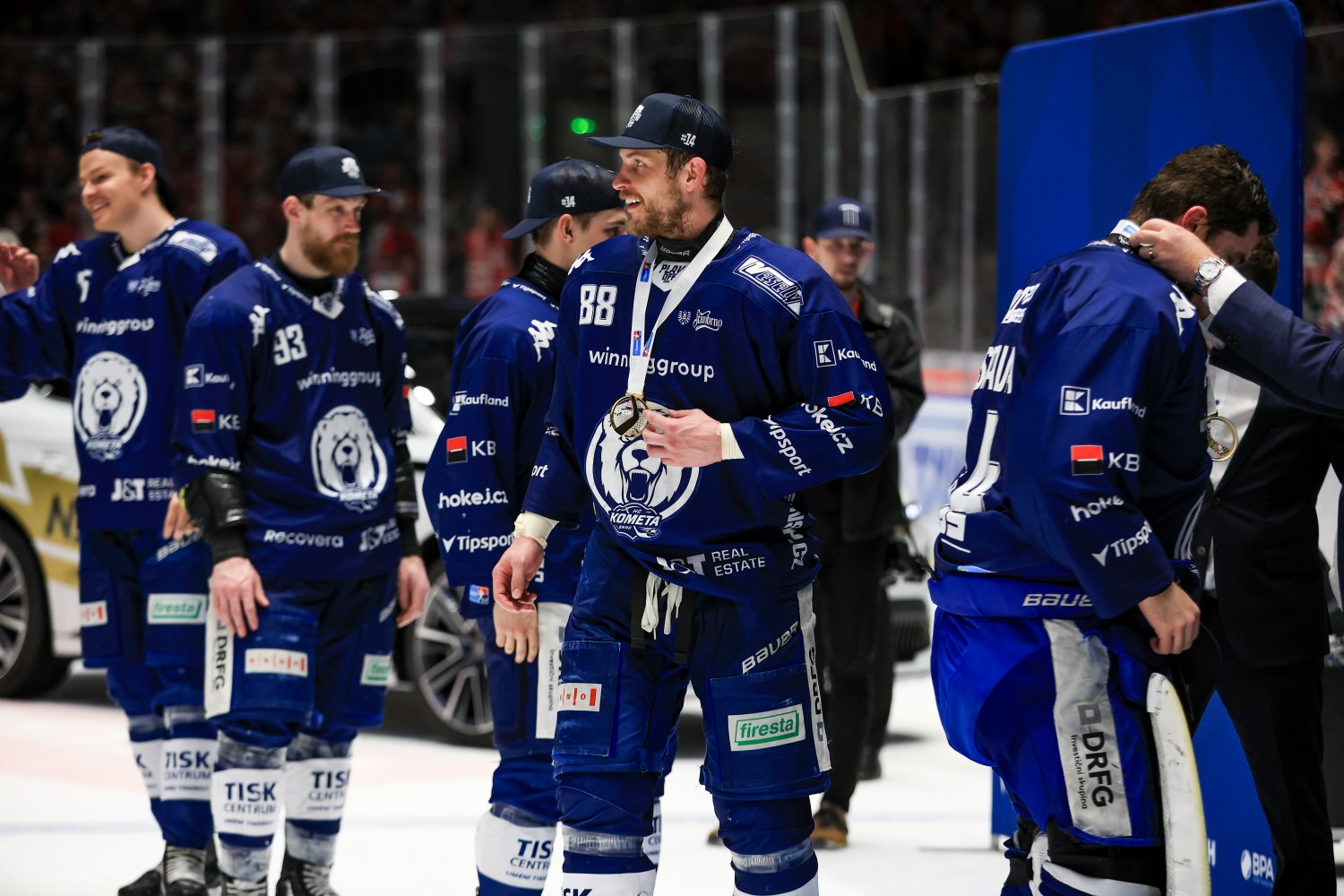 P a r d u b i c e – Brněnská Kometa si po bezchybném výkonu na ledě Pardubic dokráčela pro čtrnáctý titul v klubové historii. Tečku za sezonou korunovala nula Michala Postavy, tři góly do klece Dynama a zlaté medaile na krku. Užijte si s námi mistrovskou radost! Článek aktualizujeme.