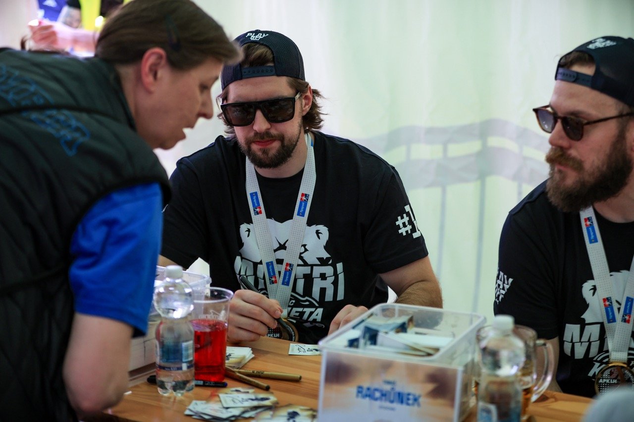 B r n o – Město a region ovládá obrovská vlna euforie a zájmu fanoušků o to, aby se alespoň na chvíli mohli potkat s novopečenými mistry české extraligy. V odpoledních hodinách odstartoval program nejprve v pivovaru Starobrnu, které návštívili tisíce příznivců modrobílých barev. Fanoušcí si mohli hráče podepsat na autogramiádě, vyfotit se s nimi a užívat si báječné atmosféry v horkém dni. Obrazem a videem se můžete podívat, jak vše probíhalo. Akce bude pokračovat v 19:00 na Zelném trhu.