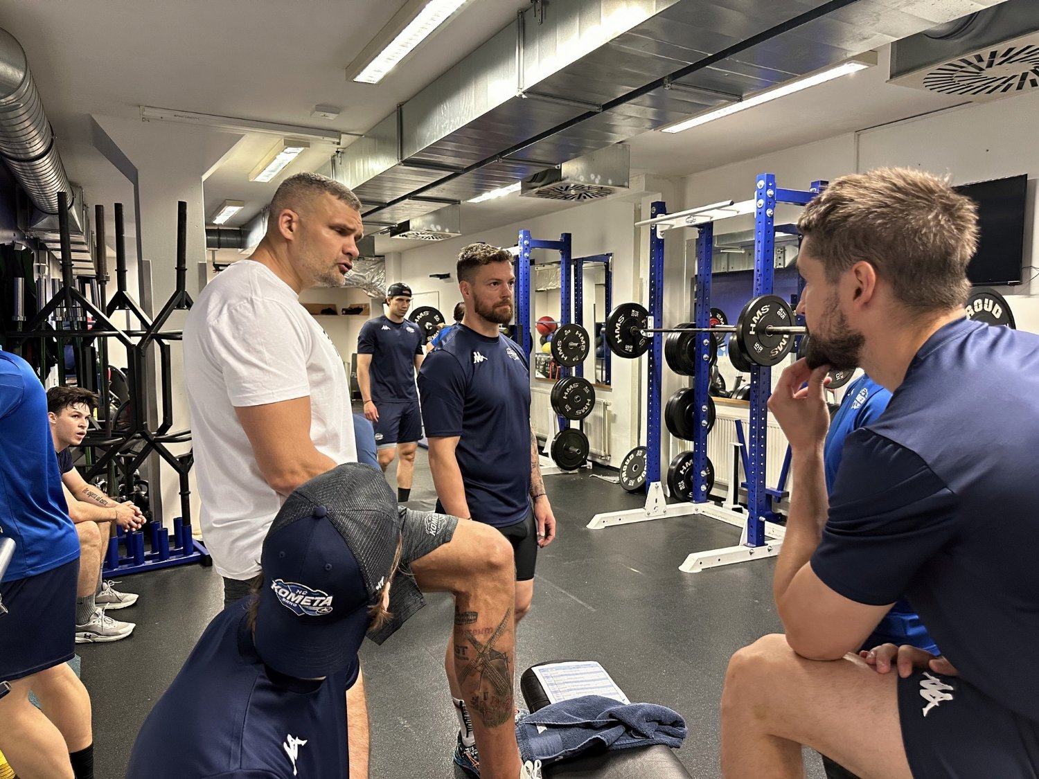 B r n o – Mistrovská Kometa pokračuje už ve třetím přípravném týdnu před novou sezonu. Hráčů makají v posilovně, na ploše Winning Group Areny a také v boxárně nového kondičního trenéra Tomáše Hrona. Jak probíhal pondělní trénink se můžete nyní podívat. Rozhovory a informace o dalším průběhu letní přípravy přineseme v nejbližších dnech.