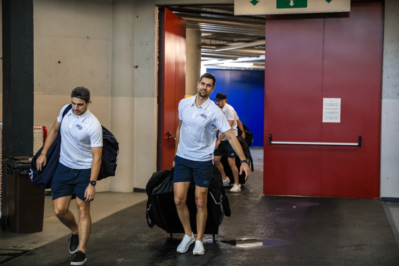 🕰 9:45 Hráči absolvovali poradu a poté se přesunuli do nedaleké haly, která je zhruba pět minut chůzí od hotelu.