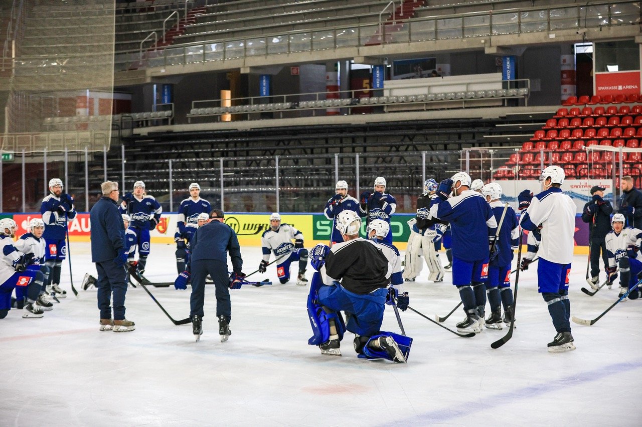 🕰 12:00 Na tomto stadionu hráče nyní čeká rozbruslení a seznámí se s místním prostředím.