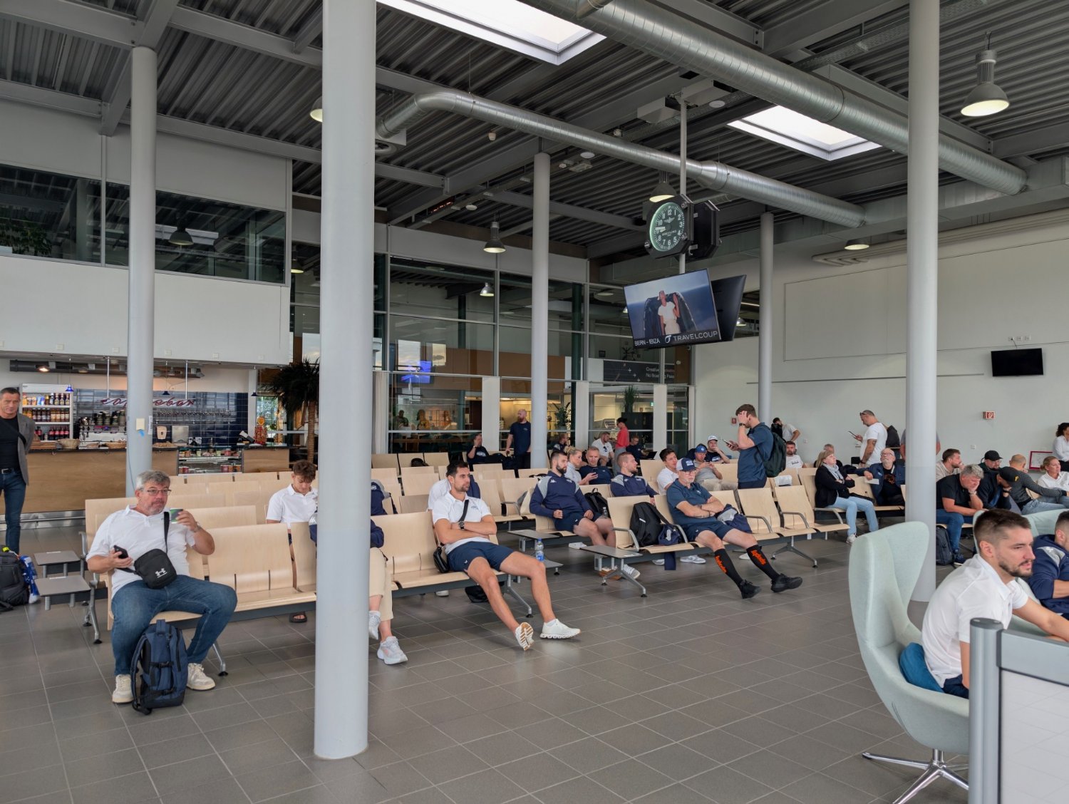 🕰8:00 Hráči dorazili k odbavovací hale, v 9:30 je čeká odlet do Itálie, kde už to dobře znají. Byť budou hrát v italském Bolzanu (začátek v 19:45), v nedalekém Neumarktu už dvakrát hráli mezinárodní turnaj.