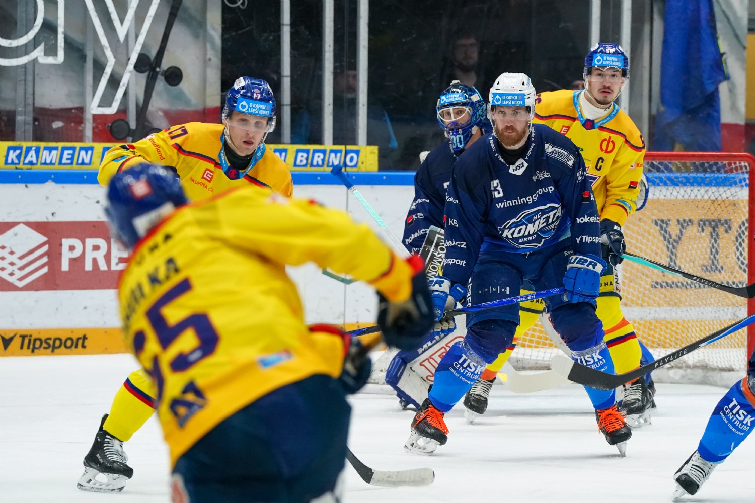 Podstatnou část přesilovky si Jihomoravané přenesli do prodloužení. V něm přisoudil bonusový bod Kometě Andrej Kollár precizní trefou z levého kruhu – 4:3.