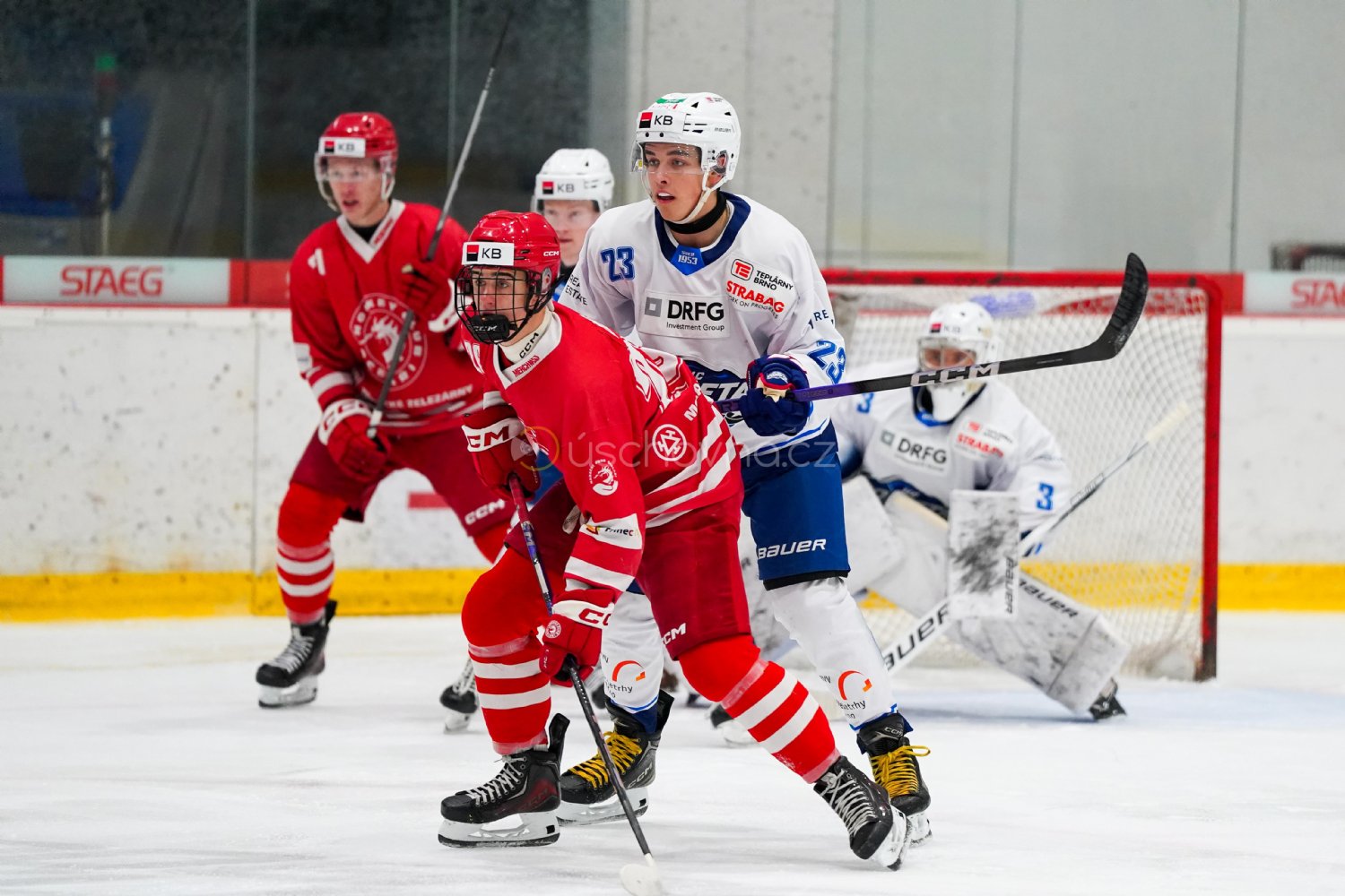 Úvod utkání na vyškovském ledě byl hodně vyrovnaný a první větší šanci měl při přečíslení dva na jednoho Veselský, či při dorážce Rakus. Jinak se ale v první třetině čekalo na gól marně a nezměnila na tom nic ani velmi nebezpečná dorážka před brankovitěm Ostřížka, ten narazil na skvělý zákrok Ondráčka. Kometa v závěru prvního dějství přežila oslabení a mohla se tak z kraje druhé třetiny dostat do vedení.
