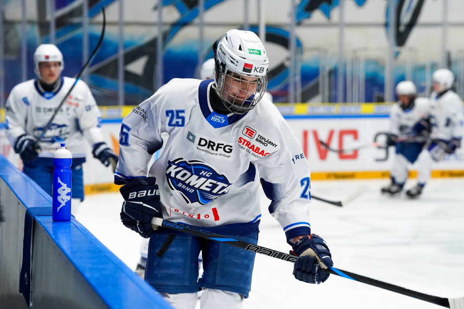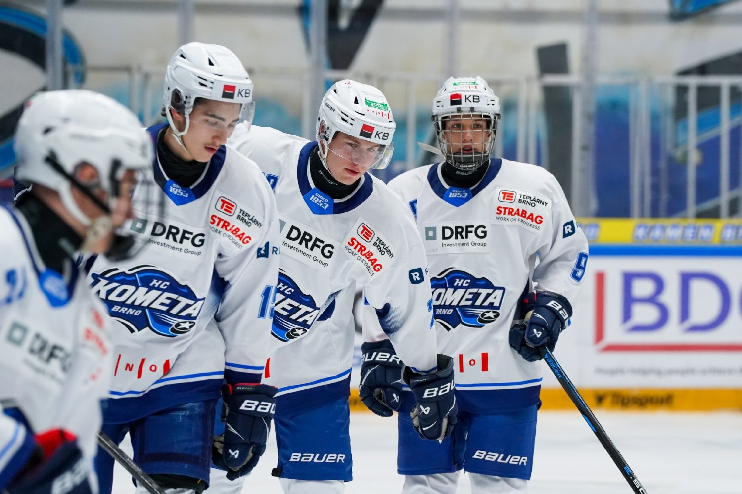 Juniorka Komety vstoupila do utkání proti Liberci velmi dobře. Po celých dvacet minut prvního dějství si držela herní převahu. První větší šanci Brna rovnou přetavil v gól Dominik Halačka. Po jeho nahození na Charvátovy betony kotouč zachytil Brabenec, který jej poslal do slotu zpět Dominiku Halačkovi. Ten s pukem zamíchal a zamířil pod vyrážečku Charváta – 1:0. Dobrý pokus měl na holi také Zubíček, dlouho ale zpracovával kotouč, a gólman Liberce se proti jeho střele stačil přesunout. V závěru periody Kometa dostala k dispozici přesilovou hru. V ní našel Brabenec perfektním pasem Michala Hartla, který z první zamířil přesně pod levý růžek – 2:0.