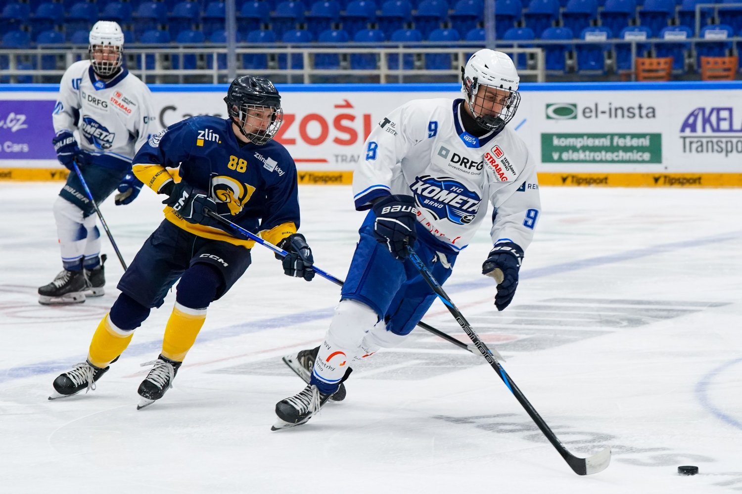 Na pár prvních dobrých střídání ze strany Komety dokázali domácí i navázat vedoucí brankou. Pěknou individuální akci předvedl Tomáš Selič, který se protáhl kolem obrany soupeře a v nájezdu se trefil pod horní tyč. Již v sedmé minutě se brněnský celek radoval z druhé branky. Puk u modré čáry z druhé vlny převzal Richard Halaš, nabruslil si blíže k brance a ránou nad vyrážečku uspěl. Poté se neujala série šancí na obou stranách, přece jen se však Zlín dostal do kontatku. Prudký pas před brankoviště tečoval do sítě Ivan Pažout. Ještě než se odešlo do kabin, Kometa opět navýšila skóre. Před brankovištěm dorazil nahození od modré čáry důrazný Tomáš Béřeš.