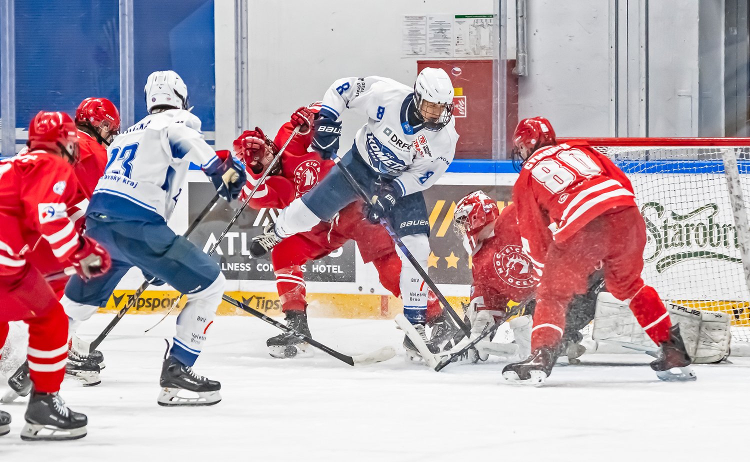 Podobnou střelu vypálil následně i Proch, tu ale stihl ještě tečovat Vilém Smrčka – 4:4. Aby toho nebylo málo, celý obrat dokonal trefou od levé tyče Tobiáš Topalov – 5:4. V závěru periody srovnávali tentokrát hosté, a to zásluhou Marka Sedláčka – 5:5. Hosté mohli navyšovat ještě při trestném střílení, kterého se ujal Fizek. Na Mikulce ale nevyzrál, jelikož proti němu domácí brankář vytáhl zákrok betonem.