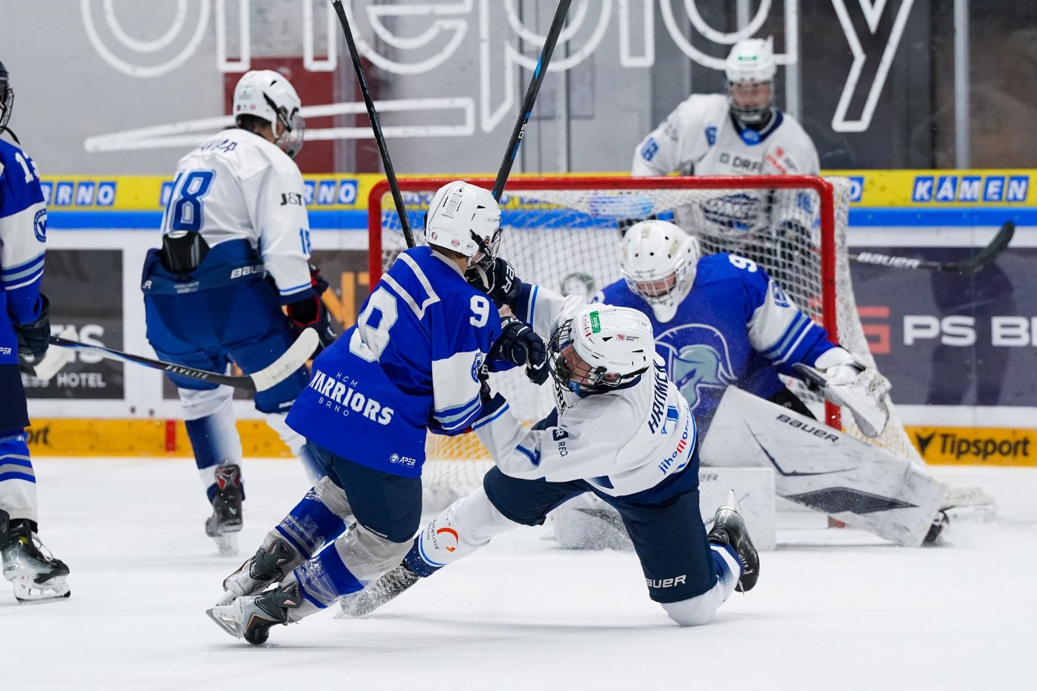 Začátek patříl Kometě, která se dostala Richterem k první střele třetího dějství. Kometě osmigólové vedení očividně nestačilo a chtěla přidat další góly. Přišla tyčka Haviara od modré čáry, hosté sice bojovali, ale Kometa nedali soupeři žádný větší prostor. Následovala přesilovka domácích, dala Warrioru pěkně zabrat, Valenta pochytal několik střel, všechny ale pokryl, a tak se Kometě početní výhoda využít nepodařila.