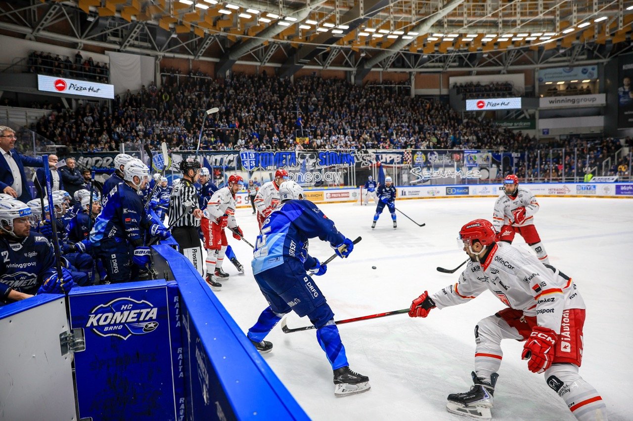Mountfield poté dokázal překlopit vývoj zápasu na svoji stranu. Aleš Jergl po obkroužení brněnské klece zasunul kotouč k tyči. Situace byla poté zkoumána na videu, puk ale prokazatelně prošel za brankovou čáru a gól tak byl uznán – 1:2. Kometa v závěru tlačila na soupeře a zkoušela risk bez brankáře. Dobrou střelu měl na holi Král, těsně ale svatyni hostů minul. Jergl poté mohl zpečetit výhru trefou do prázdné klece, Brňany ale zachránila tyčka. Přesto hosté utkání dotáhli do vítězného konce a berou všechny tři body.
