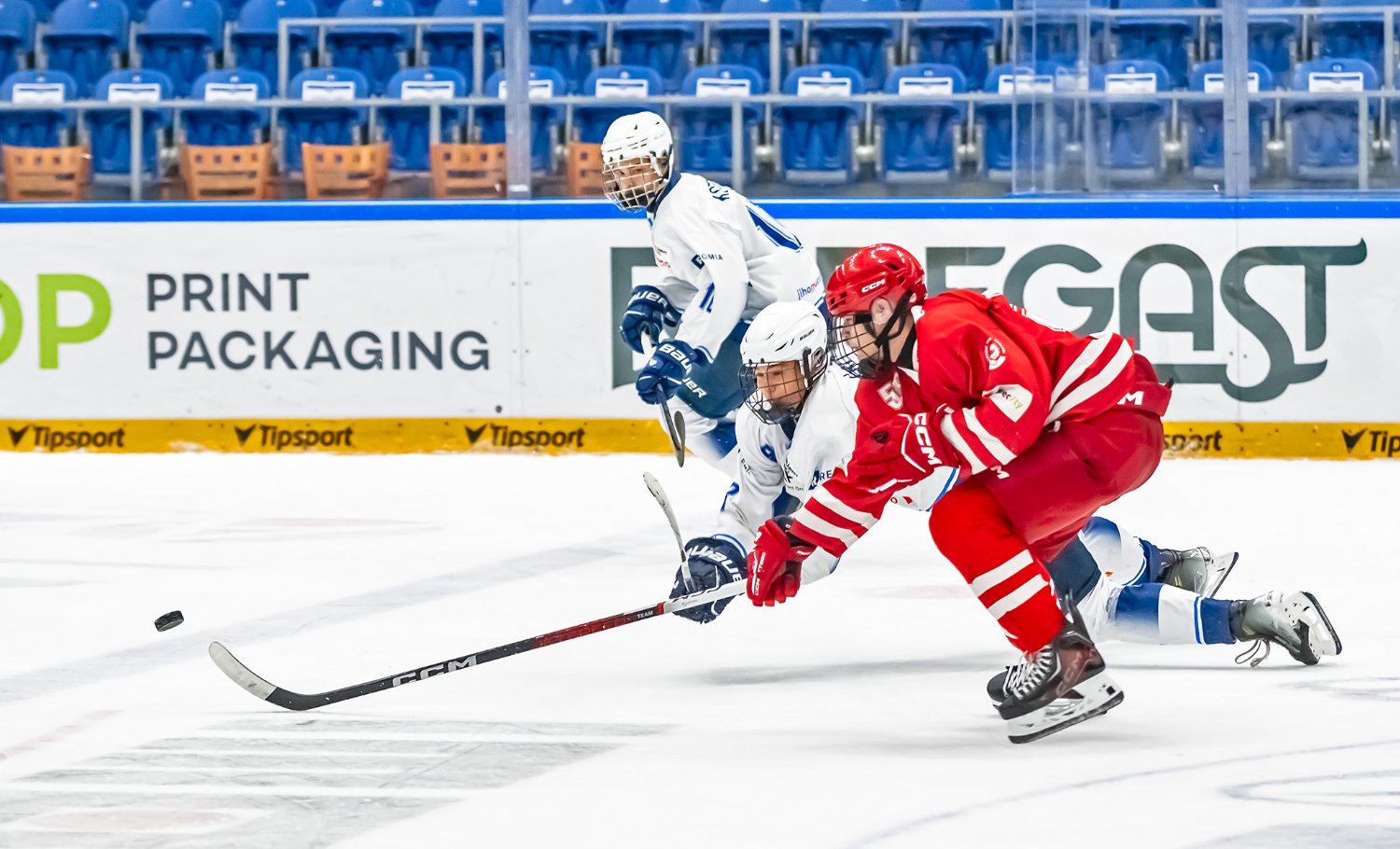 Pro dorostence měl být Třinec zatím asi nejtěžším soupeřem v této sezóně. A výsledek? Kluci si ukázali, že se i s takovými mužstvy dá hrát. Možná to tak zpočátku, když šel soupeř do vedení, nevypadalo, postupně se ale do tempa dostali. „Určitě šlo znát, že byl Třinec trochu těžší soupeř. Oproti ostatním týmům, proti kterým jsme hráli předtím, na tom byl líp fyzicky a jeho hra byla trochu lepší. Pořádně jsme se na něj připravili. Nakonec jsme to ale zvládli, takže dobrý. Ze začátku nás hodně tlačili. Dali docela dost gólů a vedli. Díky tomu si asi mysleli, že to půjde samo. My jsme naopak od druhé třetiny přidali a vrátili jim to.”