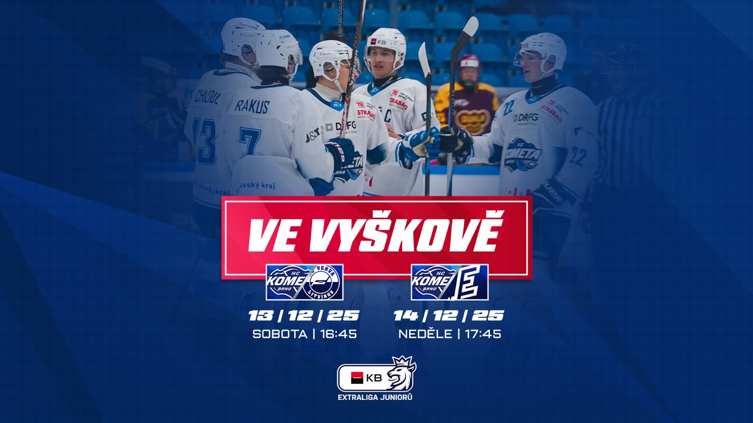 13. 12. HC Kometa Brno – HC Litvínov 16:45 (Vyškov, Zimní stadion)