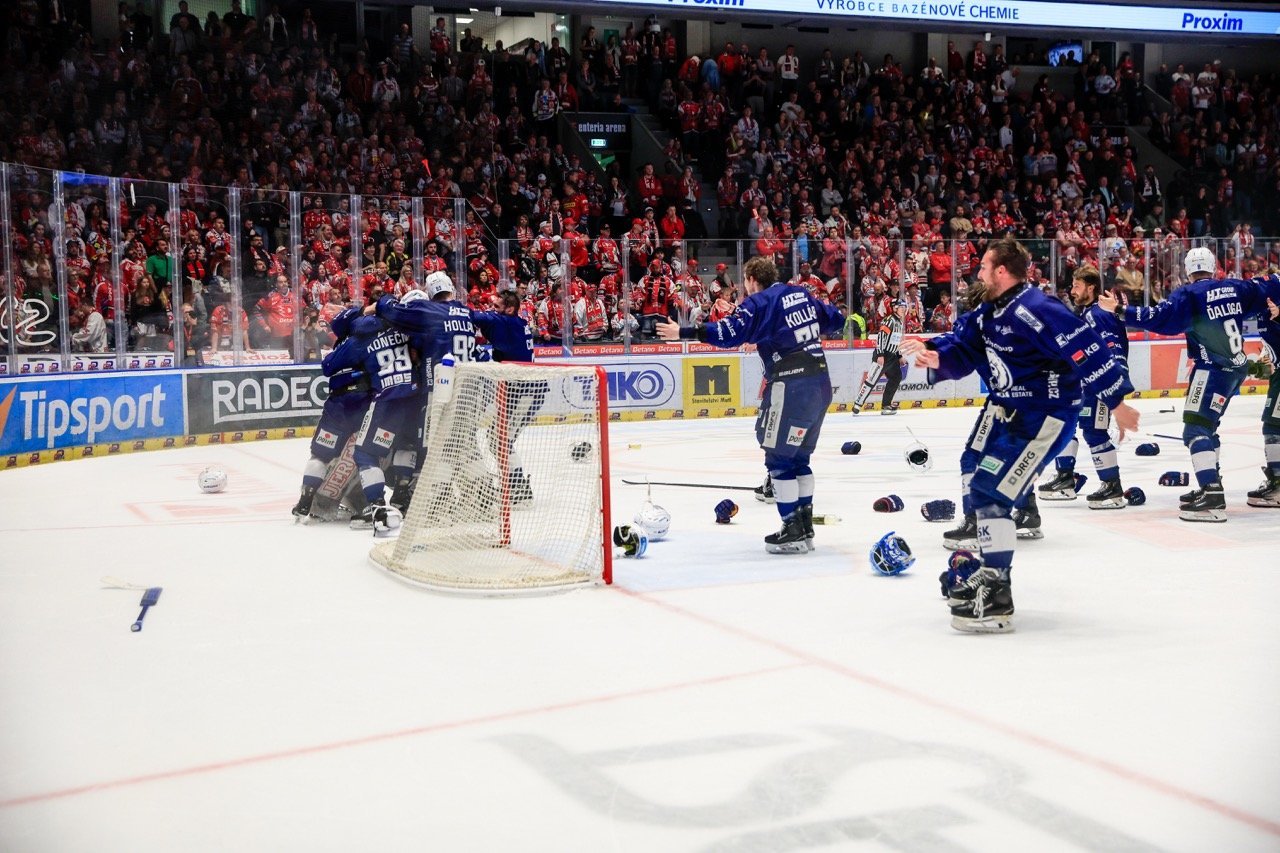 Brněnská oslava titulu na pardubickém ledě. Foto: Vít Golda