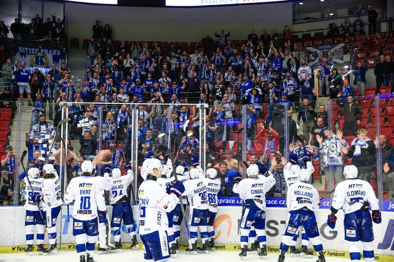 Brněnská oslava postupu ze čtvrtfinálové série proti Karlovým Varům. Foto: Vít Golda