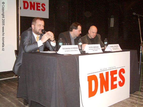 „Ostatní radnice nic jiného, než sport, nemají,“ vysvětloval primátor, proč Brno přispívá na vrcholový sport ve srovnání s menšími městy méně. „ Město má vytvořit takové podmínky, aby se hrálo, to znamená jeden slušný stadion a dost hokejových ploch. Nejsem si jistý, zda by Brno mělo třeba koupit půl klubu a dávat třicet milionů za rok,“ dodal primátor Svoboda.