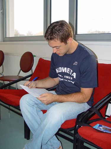 Až na to, že jsem měl komeťácké oblečení, tak bylo vše v pohodě. Jen jsme tím způsobili rozruch, motala se kolem nás spousta lidí a fotili se. V transfuzní stanici vládne perfektní atmosféra. Všichni se usmívají, sestřičky jsou moc příjemné.
