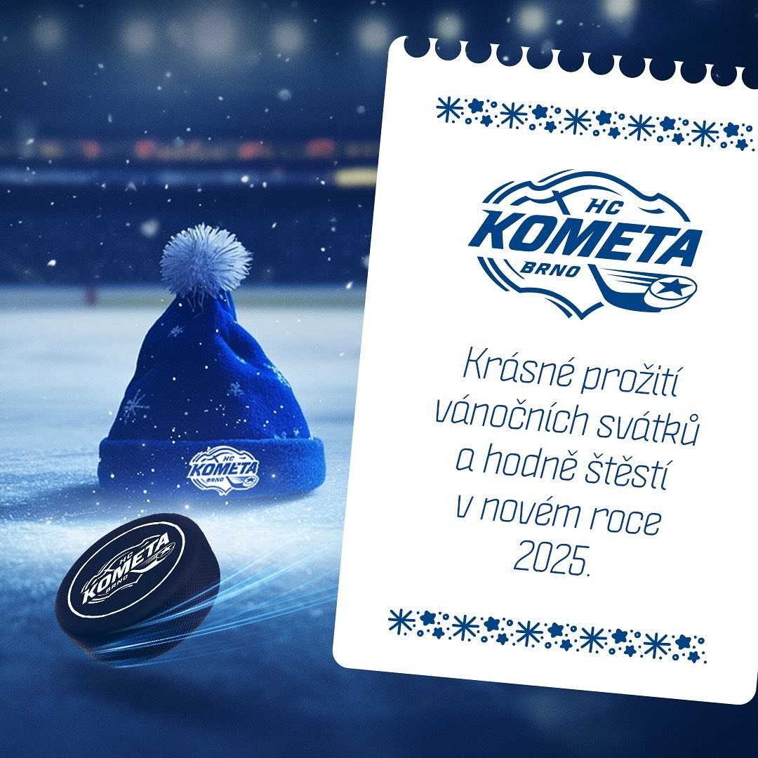 Klub HC Kometa Brno přeje všem fanouškům a partnerům klidné a příjemné prožití vánočních svátků. Užijte si závěr kalendářního roku v kruhu svých nejbližších. Už teď se těšíme na to, že i následujícím roce 2025 budeme přidávat další společné zážitky.