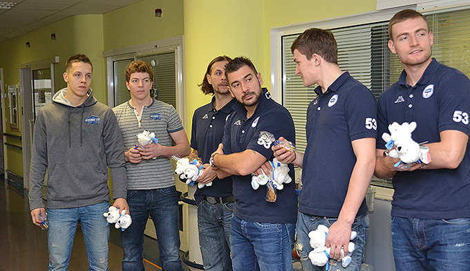 Za dětmi podobně jako hráči Komety chodí na návštěvy sportovci či známé osobnosti odhadem šestkrát ročně, což nám prozradila vrchní sestra Martina Petlachová. „Bylo vidět, že se to dětem líbilo. Bylo to pro ně rozptýlení. Dělo se něco jiného, neměly žádné ošetřovatelské zákroky, dostaly dárečky, viděly hokejisty, se kterými si mohly popovídat, díky čemuž se jim teď motá v hlavičce i něco jiného než nemocniční prostředí. Bylo to pro ně hrozně fajn. Navíc sport je super, takže to bylo dobře pro děti i pro rodiče,“ těšilo vrchní sestru. „Pokud se s hráči setkali větší kluci, určitě je to více zajímalo… Máme všude televize, mohou si půjčit notebook a brouzdat na online přenosech. Menší děti dostaly plyšáka, se kterým si budou nějakou dobu hrát,“ dodávala Martina Petlachová. My za Kometu přejeme dětem, aby se uzdravily.