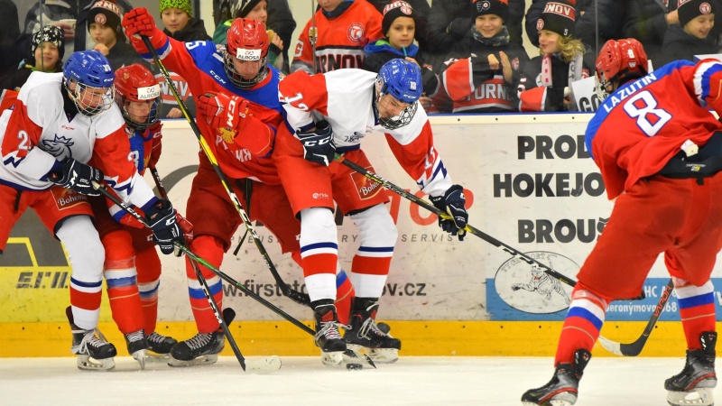 Momentka z utkání české šestnáctky proti Rusku. Foto: Ronald Hansel / Juniorský hokej