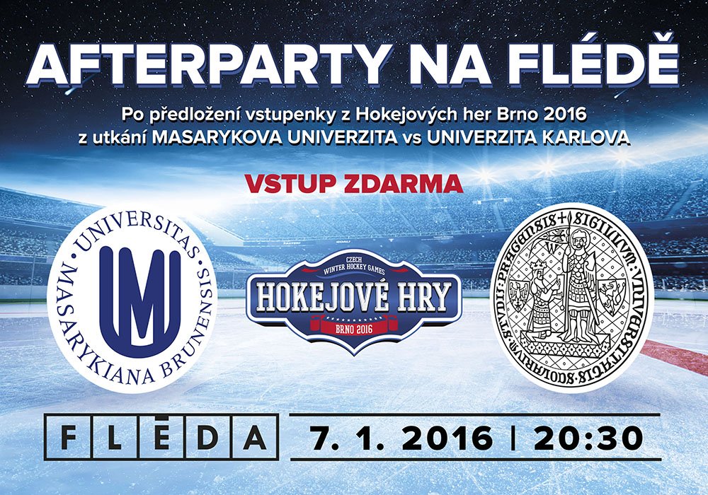 Po skončení utkání se plánuje afterparty v nedalekém klubu Fléda ve Štefánikově ulici. Pokud se prokážete vstupenkou na utkání, máte vstup na afterparty zdarma.