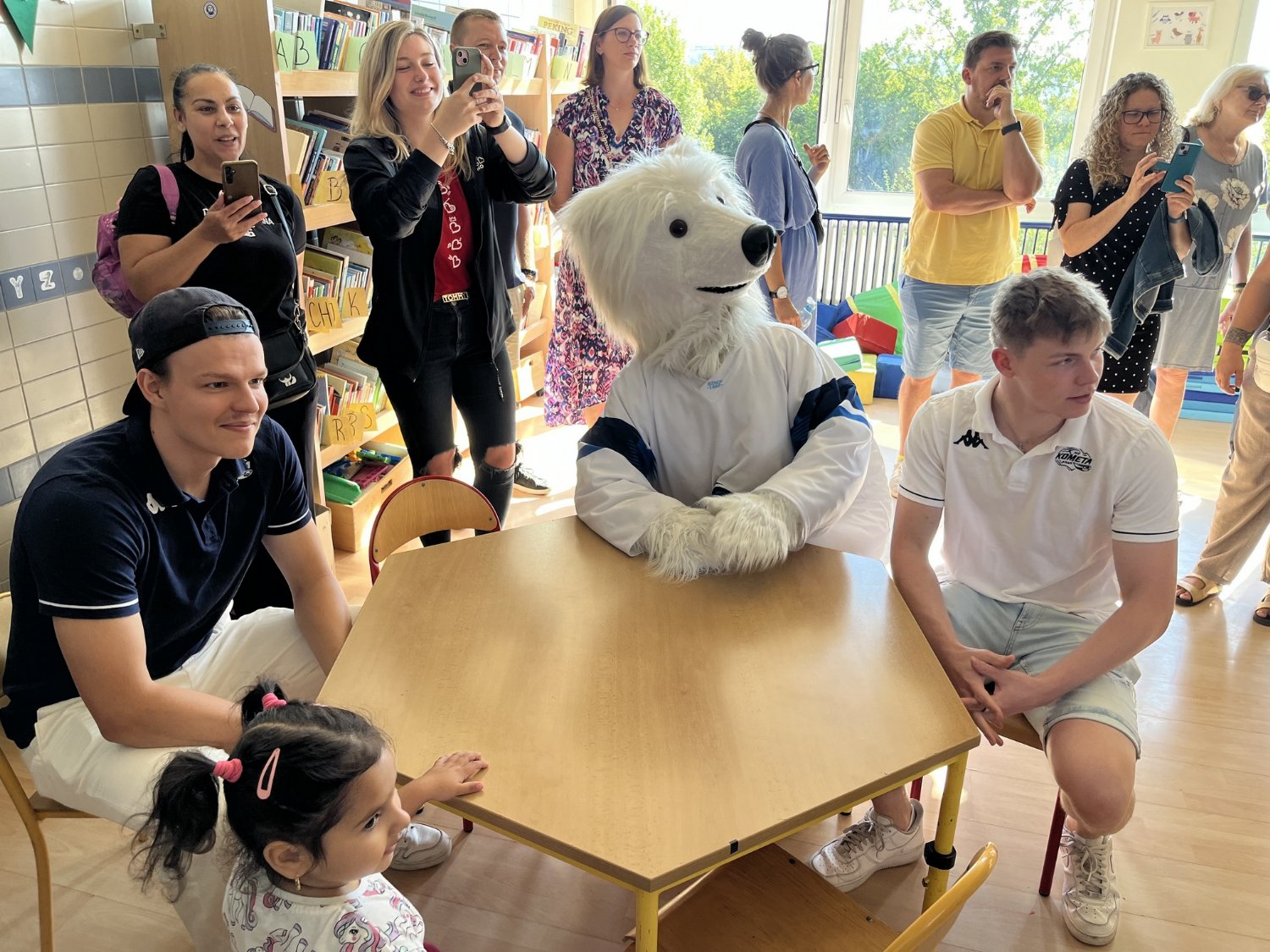 Potěšit ty nejmenší děti přijeli hokejisté Jakub Kos s Janem Kavanem, nechyběli samozřejmě ani medvědí maskoti, kteří dětem rozdávali nejen radost, ale i malé dárečky.