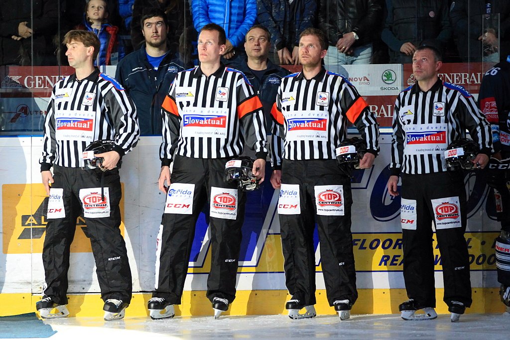 Hlavní rozhodčí provedou vhazování pouze na začátku třetiny. Čároví rozhodčí provedou vhazování po gólech.