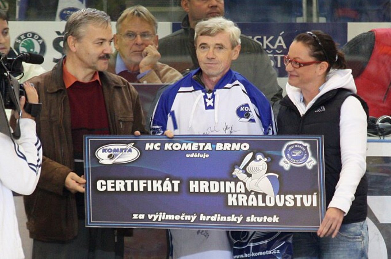Psal se rok 2010, když Hana Cahová dekorovala za záchranu dítěte prvního hrdinu Království Komety, pana Teodora Lipku. Foto: Michal Eger.