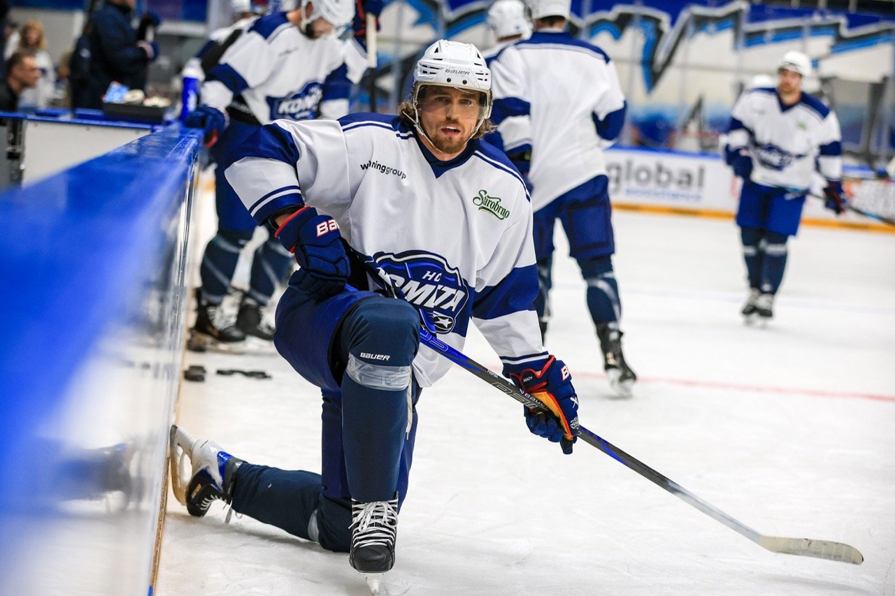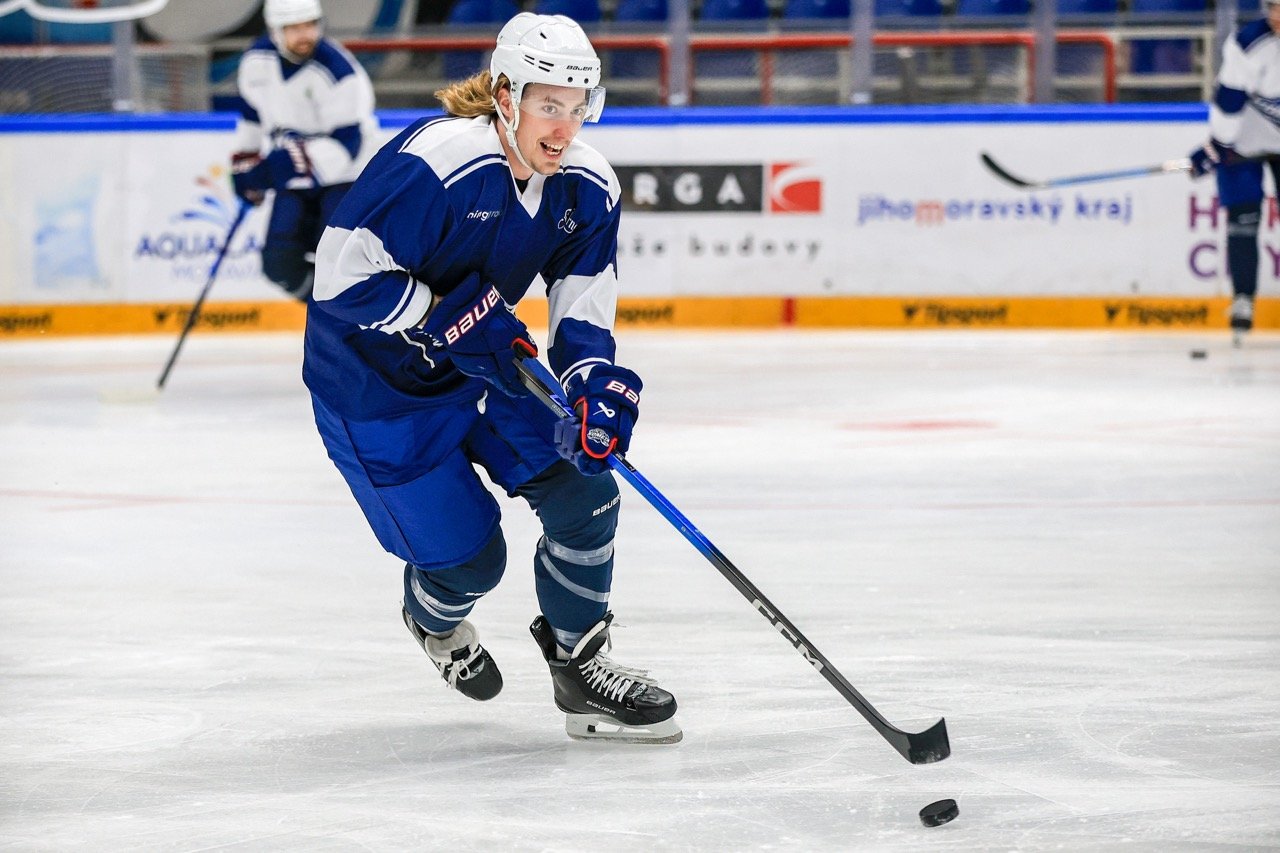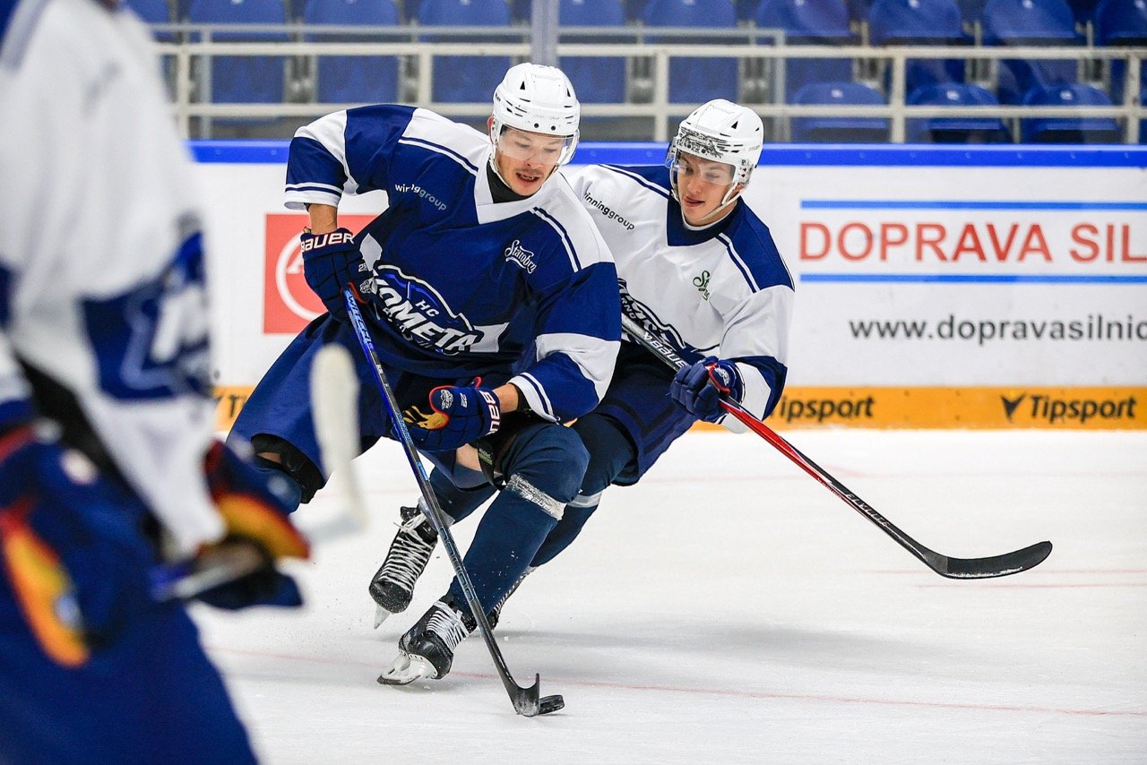 Modré dresy: Jan Kavan, Aleš Stezka, Gašper Krošelj, Lukáš Cingel, Jakub Flek, Jakub Kos, Hynek Zohorna, Tomáš Zohorna, Adam Boltvan, Robin Rakus, David Moravec.
