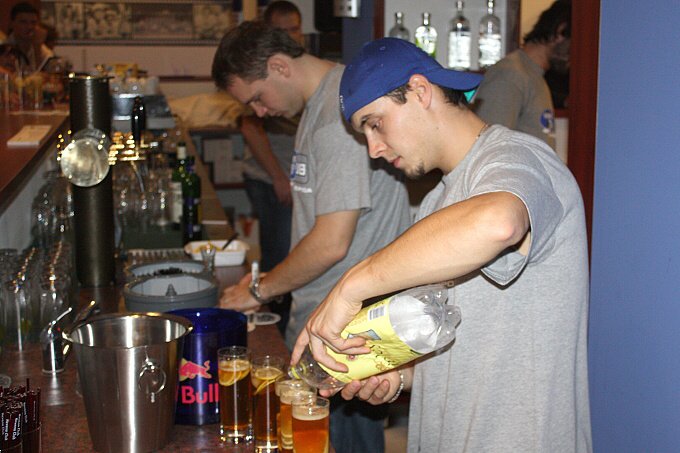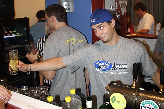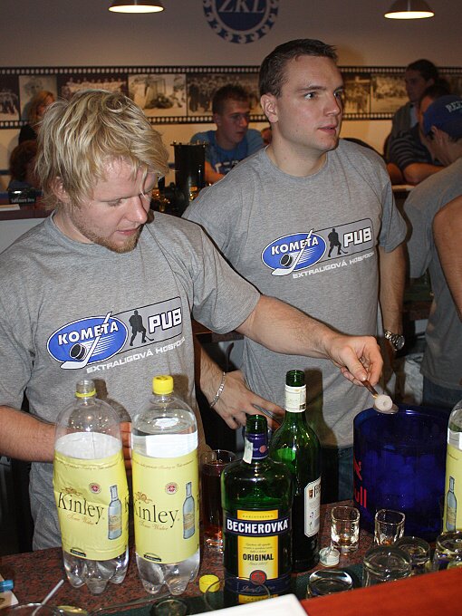 Tito čtyři hokejisté brněnské Komety začali ihned plnit svoje poslání – nikoli tradiční, ale pouze pro tento slavnostní večer. Pouze včera si totiž fanoušci modrobílých barev mohli vychutnat tři různé míchané nápoje právě z rukou jmenovaných hráčů. Ti se i přes narvaný bar stíhali obracet a zklamán tak nezůstal nikdo.
