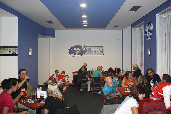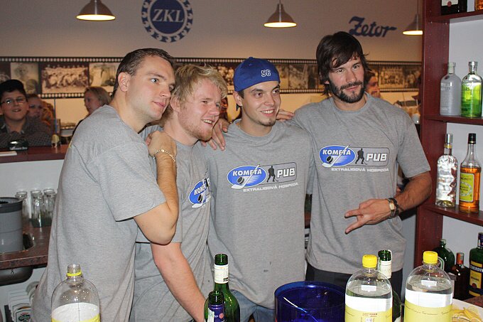 Mezi pátou a šestou hodinou večerní se návštěvníci, kteří byli obdarováni suvenýry s logem Kometa Pubu (sto prvních získalo tričko a další dvě stovky klíčenku), rozkoukávali po ani ne měsíc otevřeném sportbaru. Na šestou hodinu byl naplánován zlatý hřeb večera, do extraligové hospody začali postupně přicházet borci, které zná většina fanoušků pouze ve výstroji. Jako první se v baru ukázala nerozlučná dvojka útočníků – Roman Vondráček s Radkem Dlouhým, chvíli po nich dorazil i slovenský obránce Jaroslav Koma, který je kvůli nataženým vazům stále na marodce, a další bek Ctirad Ovčačík.