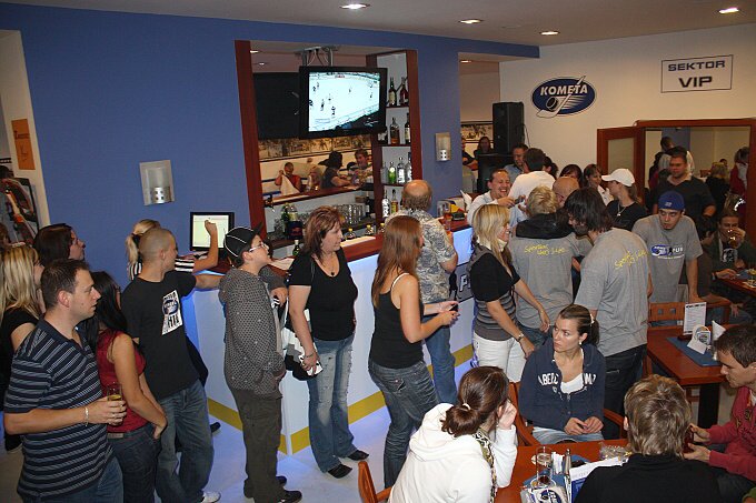 Po skončení podávání obědových menu, tedy ve 15:00 byla extraligová hospoda uzavřena, aby se vše připravilo na večerní slavnostní akci. Před pátou hodinou odpolední, tedy celou hodinu před startem hlavní akce, již byly před Kometa Pubem k vidění desítky lidí. Hned několik minut po znovuotevření komeťáckého sportbaru byla obsazena většina stolů – fanoušci se usadili jak do pivnice, tak do hlavní místnosti Pubu – tedy Sektoru E, plný byl také VIP sektor a i přes klesající teploty se zaplnila i zahrádka.