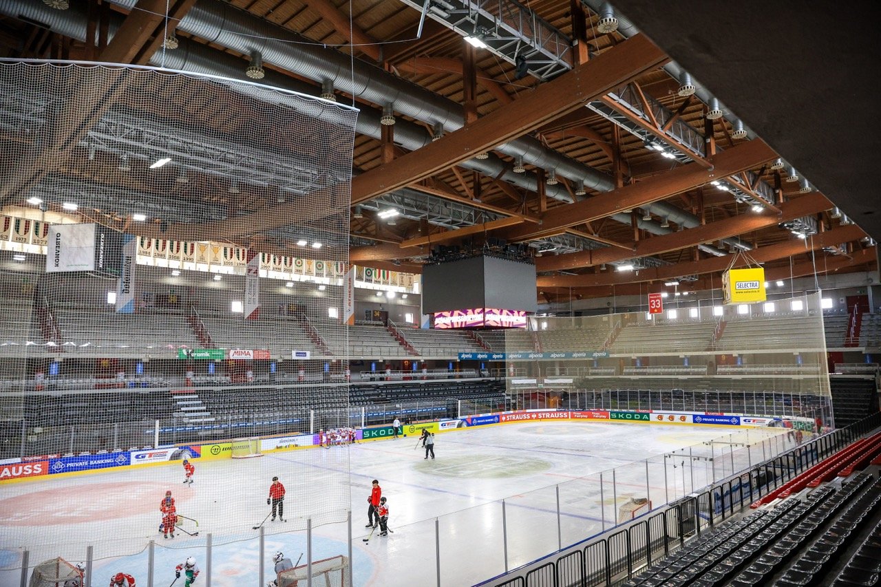 🕰 12:00 Na tomto stadionu hráče nyní čeká rozbruslení a seznámí se s místním prostředím.