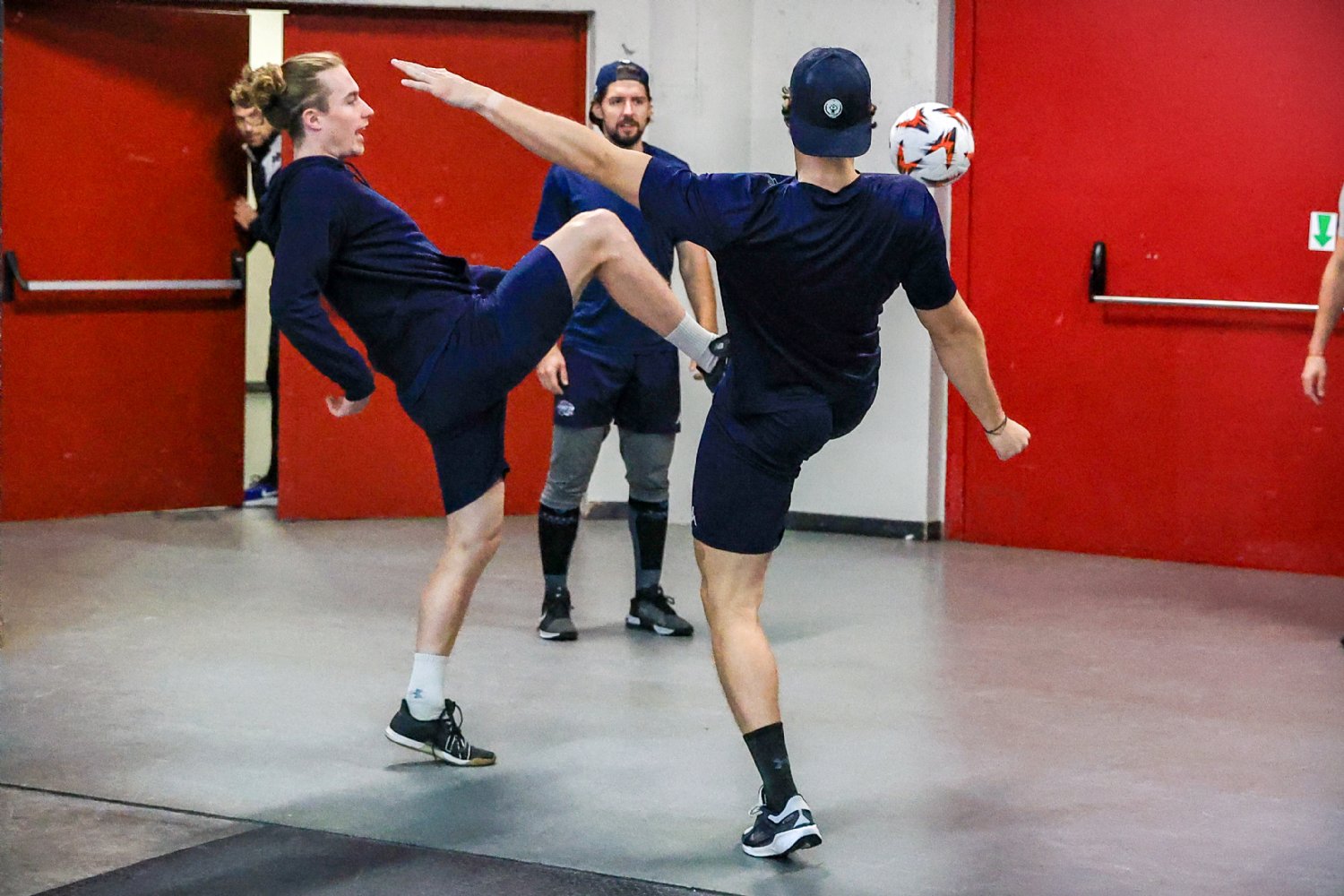 🕰 18:10 Celý tým je na místě a probíhá tradiční fotbálek jakožto součást rozcvičky.