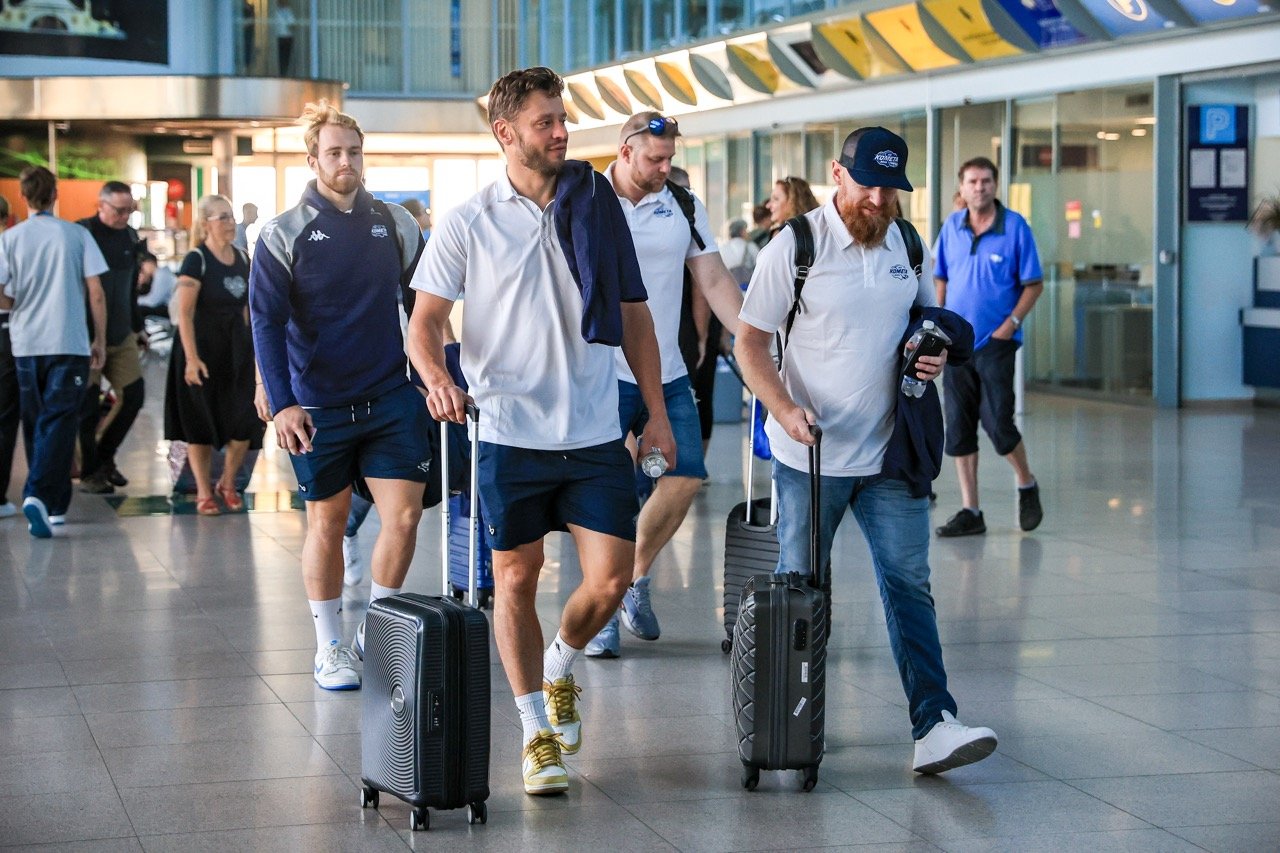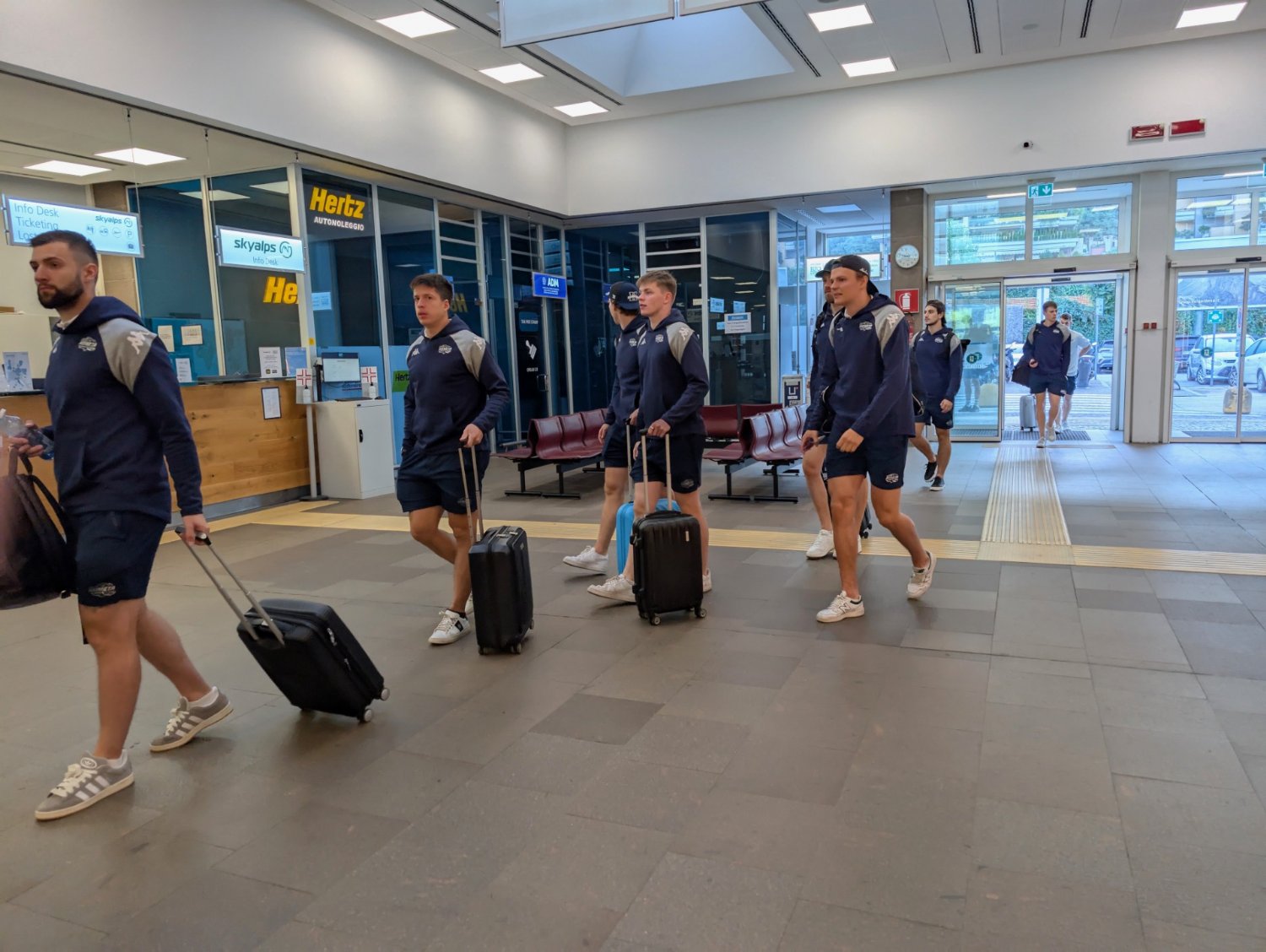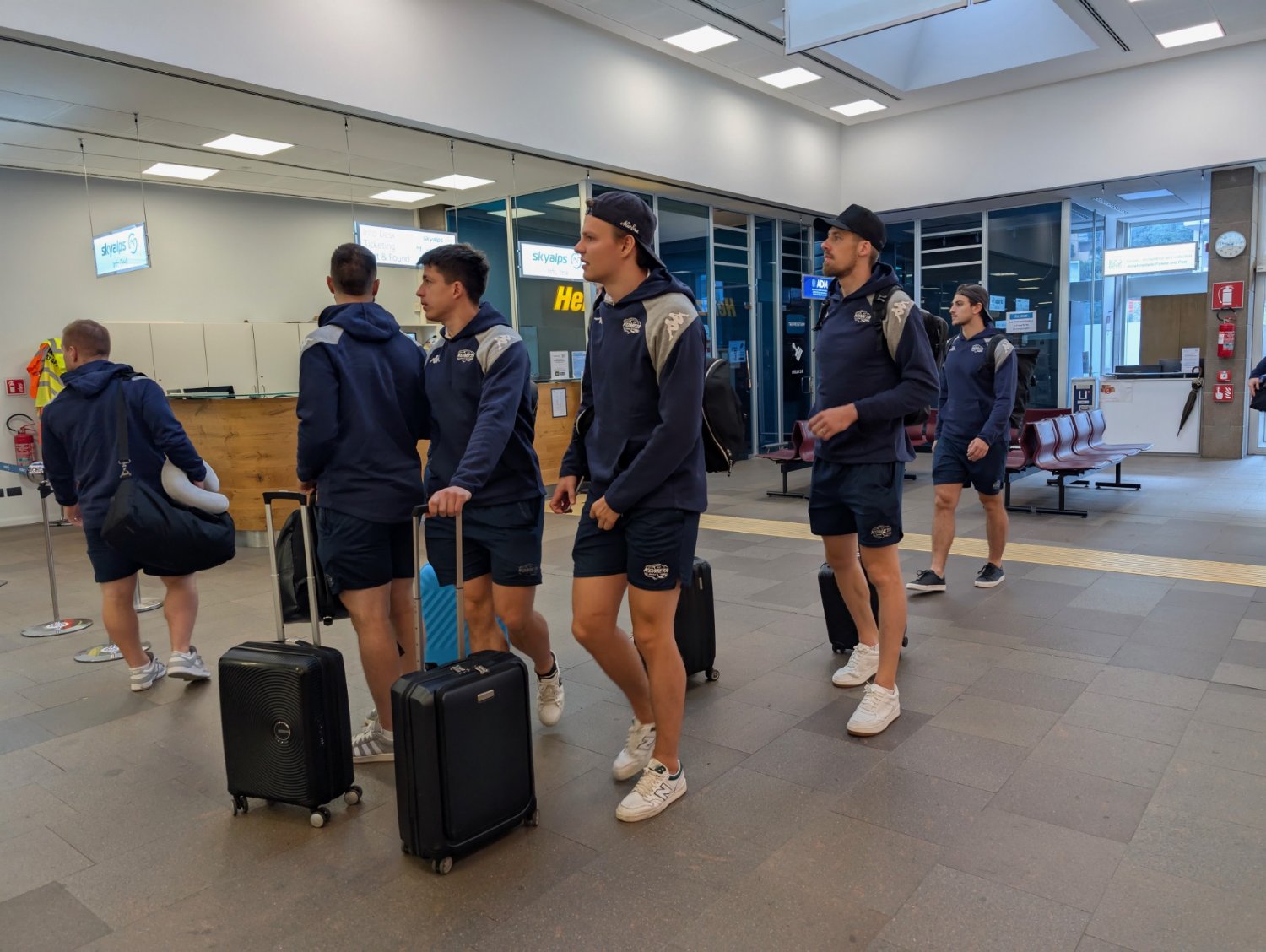 🕰8:00 Hráči dorazili k odbavovací hale, v 9:30 je čeká odlet do Itálie, kde už to dobře znají. Byť budou hrát v italském Bolzanu (začátek v 19:45), v nedalekém Neumarktu už dvakrát hráli mezinárodní turnaj.