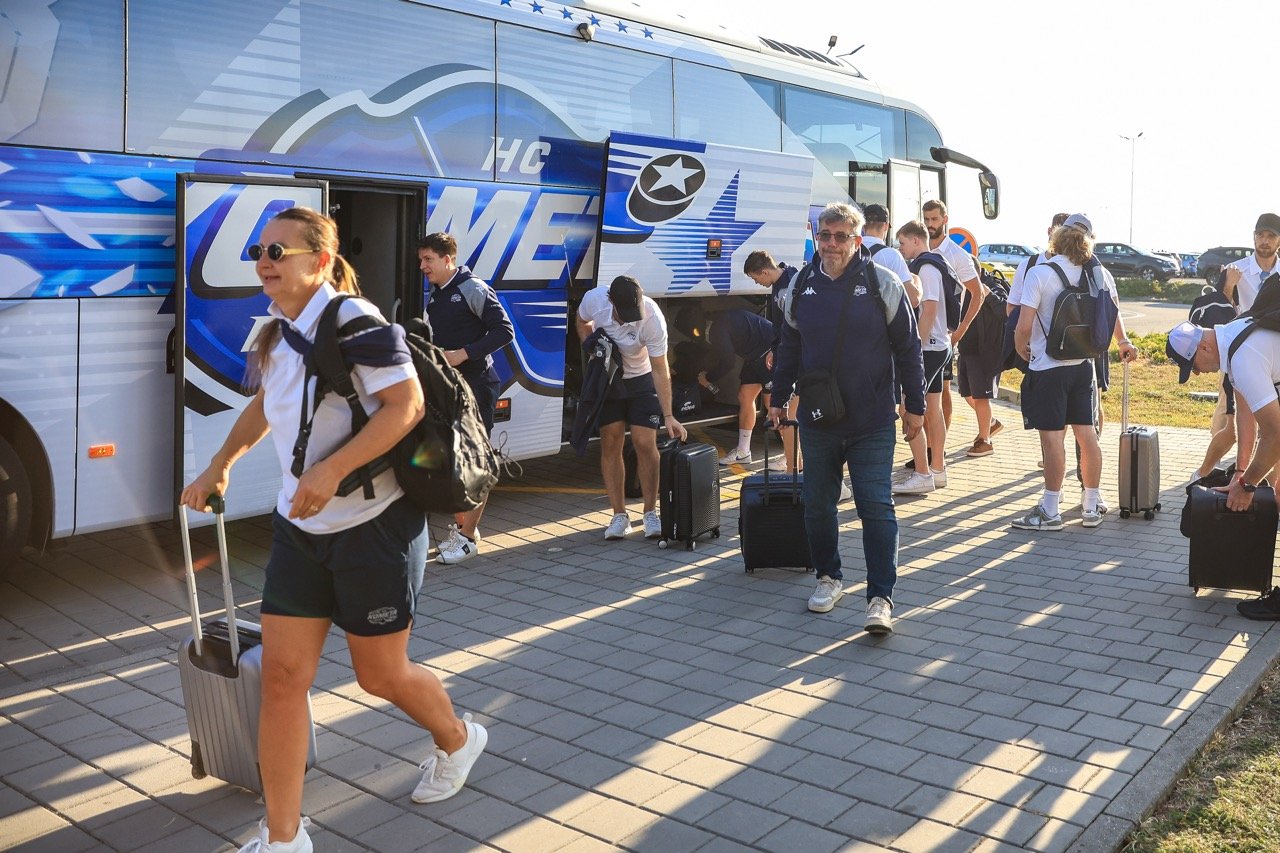 🕰7:40 Hokejisté brněnské Komety vyrazili z Winning Group Areny na letiště v Tuřanech.