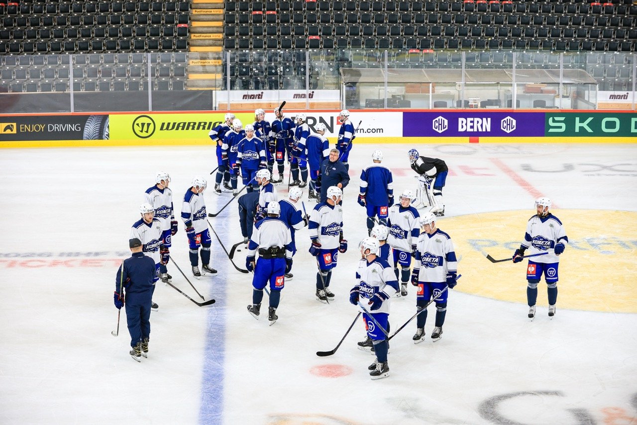 🕰 11:55 Kabina je připravena, hráči už jsou v Postfinance Areně, kde za dvě hodiny vypukne duel mezi švýcarským a českým mistrem.