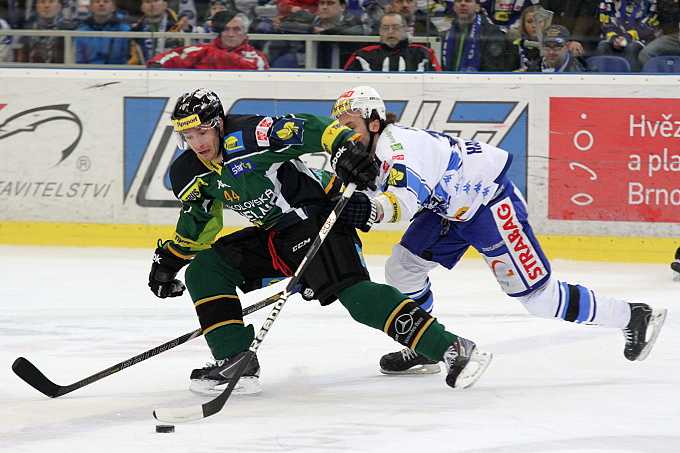 Poté o sobě začal dávat vědět autor dvou hattricků z posledních dvou kol, tedy Petr Pohl. Nejprve jeho střelu z levého kruhu Čiliak vyrazil, o pár chvil později se na něj řítil od modré. V tomto mini souboji opět uspěl mladý brněnský brankář. Za zmínku v této třetině patří určitě šarvátka mezi Hovorkou a Kováčikem, který mstil nešetrný zákrok na Kempného. Nakonec se vše uklidnilo a do konce druhé části jsme další rušivý moment neviděli.