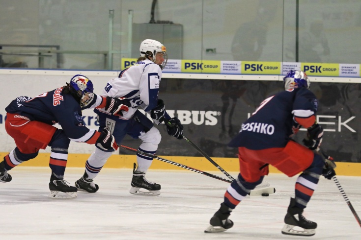 Jak první třetina byla spíše ve znamení Komety, tak druhá dvacetiminutovka patřila více Salzburgu. Rakouský celek více napadal, dral se do zakončení, a to se po pár minutách projevilo i na skóre. Salzburgský ostrostřelec John Jason Peterka z dobré střelecké pozice poslal kotouč pod horní tyč. Rakušané měli stále více ze hry, ale skóre zápasu na svoji stranu strhl Nikolai Hede až tři minuty před koncem periody, když při přečíslení dvou proti jednomu zakončoval do poloodkryté brány. A mohlo být pro Komeťáky ještě hůř, když se stejní hráči o pár chvil později objevili v podobné situaci, ale tentokrát tuto šanci vychytal brankář Micka lapačkou. Už to vypadalo, že si junioři Salzburgu odnesou do kabin vedení, ale pak se se svoji šikovnou přihrávkou mezi kruhy objevil za bránou Erik Meluzín, který tak ke střele vybídl Petra Krejčího a ten rozradostnil více jak dvě stovky fanoušků v hale. To už bylo vše i pro druhou třetinu a ve třetí dvacetiminutovce se hrálo zase jako od začátku, za stavu 3:3.