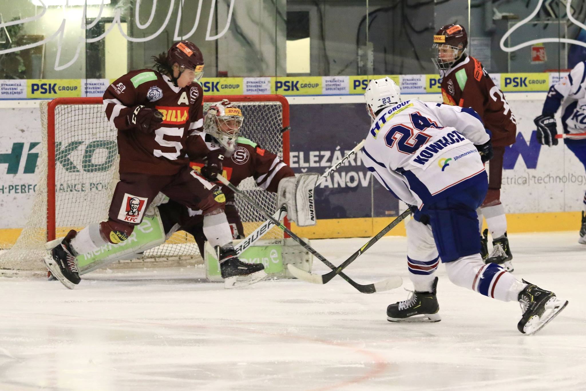 Snížení ze strany hostů ale přeci jen přišlo, když se po levé straně rozjel Michal Klimo a z těžkého úhlu odrazil kotouč prudkou ranou o masku Micky kotouč do sítě – 2:1. O vyrovnání se mohl postarat Kropáček, ale domácího brankáře nepřekonal. V dalších minutách měli obrovské šance také domácí. Nejprve byl před brankou sám Minárik, ale beton brankáře Mičána nepřehodil. Vzápětí střílel v brejku znovu Minárik, tentokrát brankáře hostů překonal, domácí se už radovali, ale rozhodčí po poradě usoudili, že puk přes brankovou čáru nepřešel. Třetí šanci Komety v řadě měl pro změnu v mezikruží Meluzín, tvrdou ránu ale hostující gólman skvěle zlikvidoval vyrážečkou. V závěru třetiny ještě domácí přežili první přesilovku celku z hlavního města, a tak do kabin odcházeli opět s jednobrankovým náskokem.