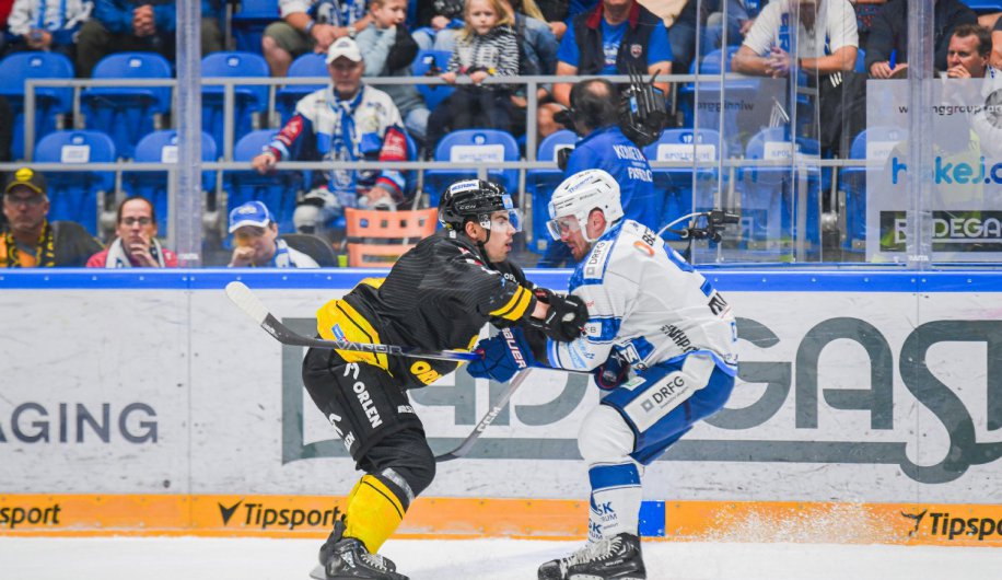 První okamžiky zápasu patřily chemikům. Druhá formace Litvínova ujela do přečíslení, které zakončoval neúspěšně Brit Liam Kirk. Zanedlouho poté vyprodukoval slibnou příležitost Pawel Zygmunt. Ten našel křizným pasem beka Demela, jemuž úvodní gól souboje z čepele ukradl Dominik Furch. Posléze přišly slibné momenty i v útočném pásmu domácích. Pospíšilovu střelu po přesné diagonální nahrávce od Lintuniemiho Tomek ještě zastavil, na následnou kombinaci první brněnské formace byl ale slovenský brankář krátký. Předchozí situace se vlastně opakovala, tentokrát však slovenský sniper přihrával z prvního doteku na volného Lukáše Cingela, který doklepnutím do odkryté klece vykouzlil první gól Komety v nové sezoně – 1:0.