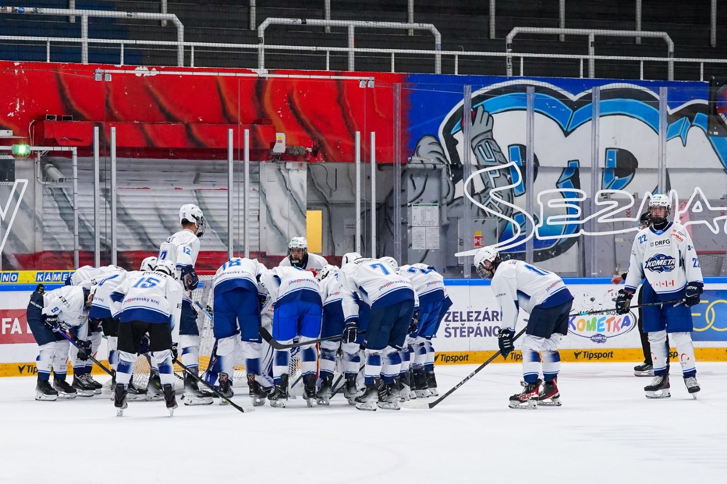 Kometa si stihla zahrát dvě přesilovky v řadě, bohužel ani jedna nevynesla gólový zisk. Samuel Jan Hronek dnes však nastoupil ve výborné formě, Kometě přispěl už pátým gólem a celkově devátým. O závěrečný gól celého zápasu se postaral šest minut před koncem Jan Dufek a uzavřel tak účet utkání - 10:0.