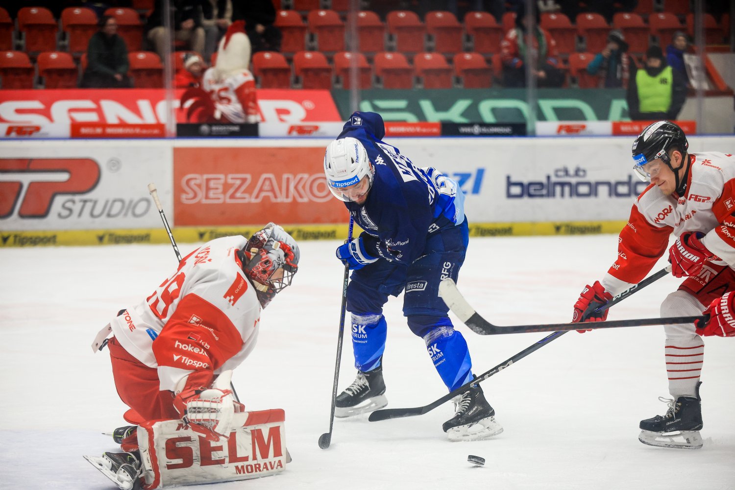 Velmi blízko byl vedoucí brance ve 44. minutě Pospíšil, který tečoval střílený pas těsně před Cichoněm, jenže domácí brankář se včas přesunul a udržel puk před brankovou čárou. Jenže úspěšnější v koncovce byla Olomouc, konkrétně Renars Krastenbergs využil prostoru mezi kruhy a ránou pod horní tyč znovu vrátil vedení domácím – 2:1. Na Kometu čekaly krušné momenty, jelikož Kohouti dostali k dispozici dvojnásobnou přesilovou hru. Tlak Mory zakončil opět střelou z mezikruží nad vyrážečku Stezky Trevor Cosgrove – 3:1. Pro brněnský celek mohlo být ještě hůř, protože v navazující klasické početní výhodě netrefil zcela odkrytou branku z brankoviště Matýs. To byla voda na mlýn pro Kometu. Střelu Krále v přesilovce dorážel Cingel, ale puk za brankovou čáru nakonec protlačil až Šimon Stránský – 3:2. Brňané se v závěru zápasu odhodlali ke hře bez brankáře, nicméně ani z vytvořeného tlaku vyrovnávací branka nepadla.