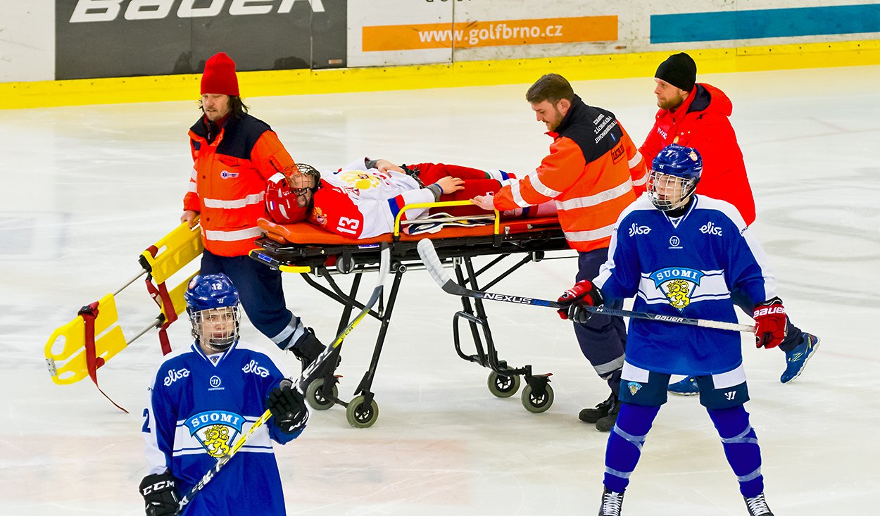 I na začátku druhé třetiny šly na led nosítka, které nakonec nebyly využity. Na zemi zůstal ležet finský obránce Salmela. Ten za pomoci lékařů odjel z ledu do šaten.