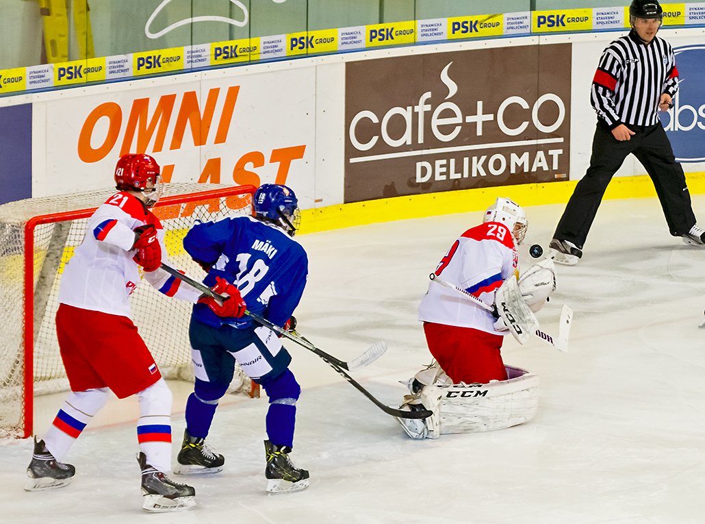 V šestadvacáté minutě se dostal přes modrou ruský Platonov, který lehkou střelou trefil tyč! Zanedlouho předvedl Toivomäki famózní zákrok, kdy sebral Rotenbergovi jasný gól.