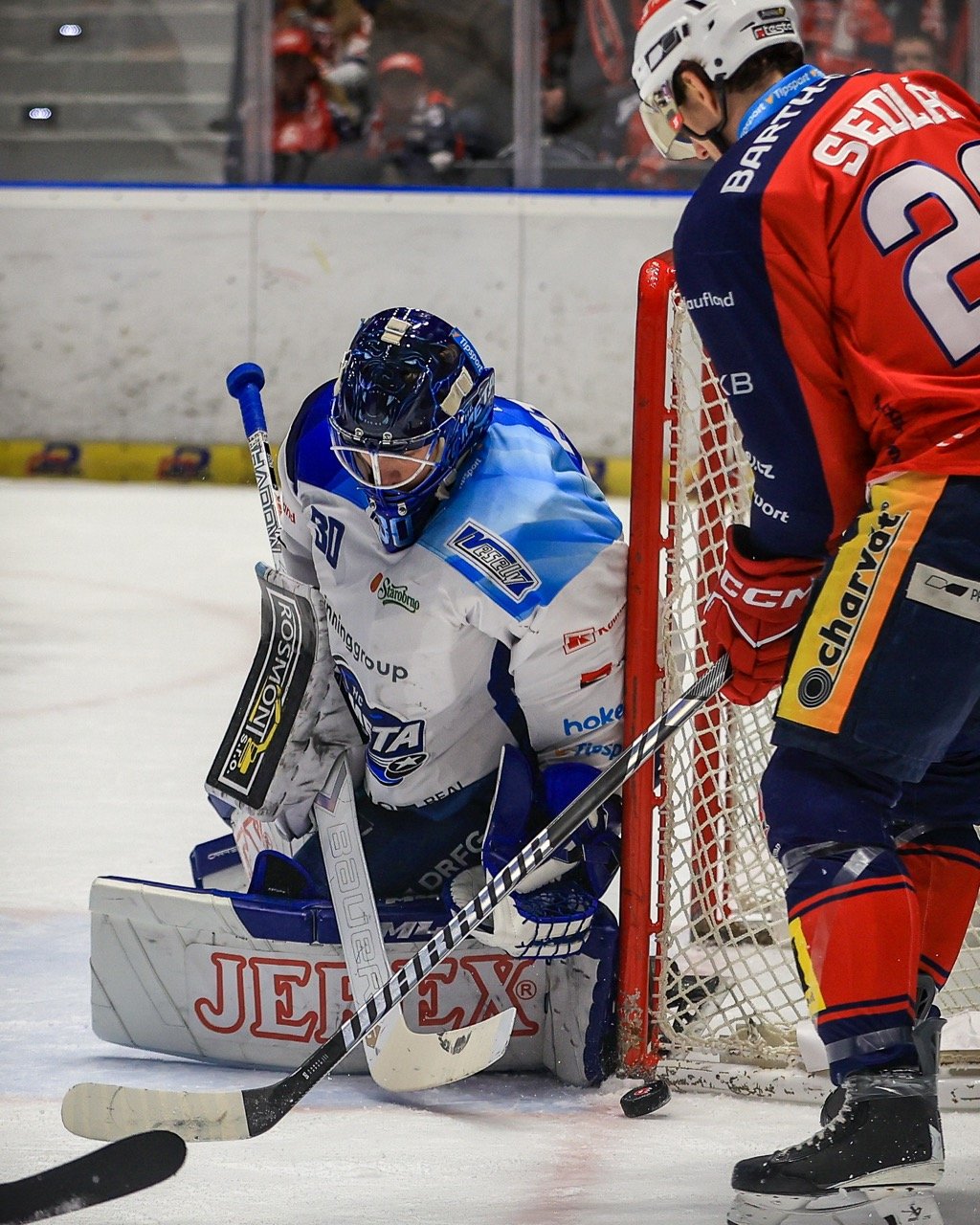 Vzápětí už si kotouče užili více i Pardubičtí, všichni si však vylámali zuby na Stezkovi. Naopak brankář na druhé straně byl překonán. V přečíslení dvou na jednoho nahrál Flek Adamu Zbořilovi, jenž se trefil do volného místa mezi třemi tyčemi – 0:1. Modrobílým nicméně zatrnulo, když měl před sebou odkrytou klec Kelemen. Stezka však stihl skvěle zasáhnout holí a nepropustit puk za sebe.