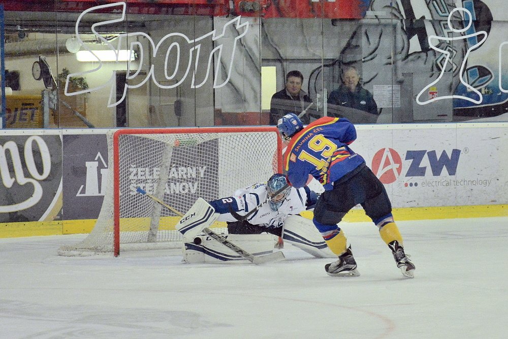 Utkání o první tabulky začali aktivněji domácí. Už po necelé minutě hledal Mlynář před brankou volného Nováka, ale tomu rána nesedla. Následně měl domácí křídelník, jenž už také nahlédl do seniorské kategorie, další šanci, nicméně jeho střelu do odkryté branky vyrazil Patera pohotovým zákrokem pravým betonem. Následně měli první šanci také hosté, ale Nedorostovi do prudké rány skočil obětavý Slabý. Za pár chvil napřáhl na modré čáře ke střele Furch a jeho pokus zastavila spojnice tyčky a břevna! První třetina nakonec branku nenabídla a oba celky odcházely do kabin za stavu 0:0.