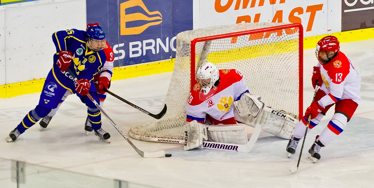 V první třetině byli mírně aktivnější hokejisté sborné, což se jim podařilo využít v deváté minutě. Rusové si vytvořili veliký tlak na branku Švédska, Kotkov si vybruslil před Hedlunda, kotouč se po jeho pokusu odrazil na hůl Alexandera Chovanova, jenž měl jednoduchou práci a poslal kotouč do sítě. Po inkasované brance domácí tým zabral a vypracoval si několik šancí. Po jedné z nich se opět mohlo měnit skóre, ale brankář Isajev předvedl parádní zákrok, když vychytal bekhendový blafák v podání Westfälta. Do kabin se tak šlo za stavu 0:1.